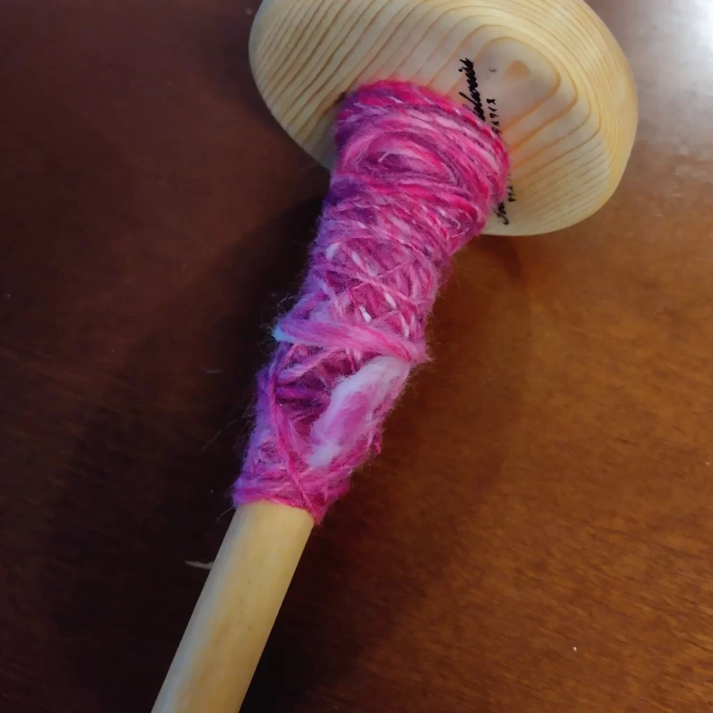 スターターキットを購入してみたところ、練習用のピンクの羊毛もセットになっていたので、まずはそれを紡いでみました。
