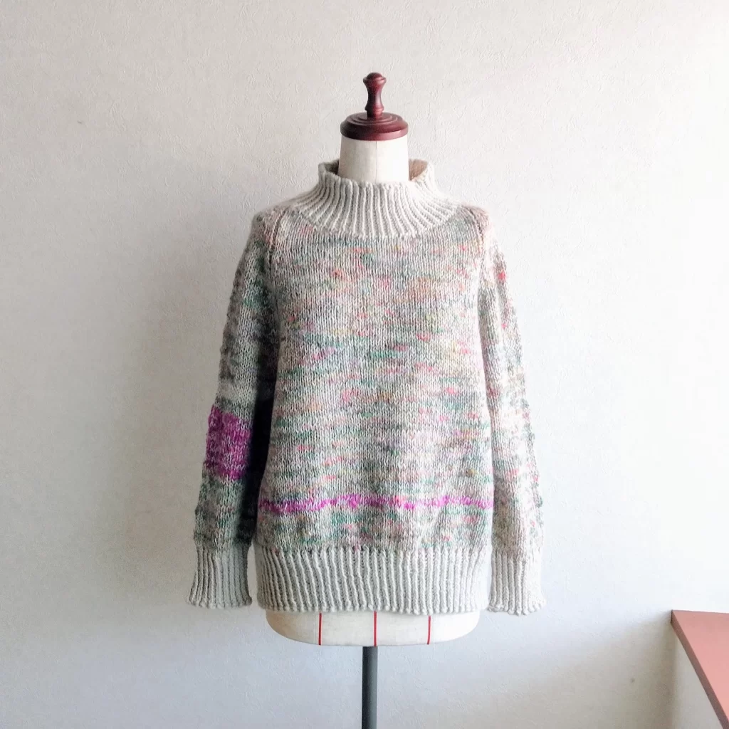 でも、せっかくなので紡いだ糸をセーターに編み込んでみることにしました。