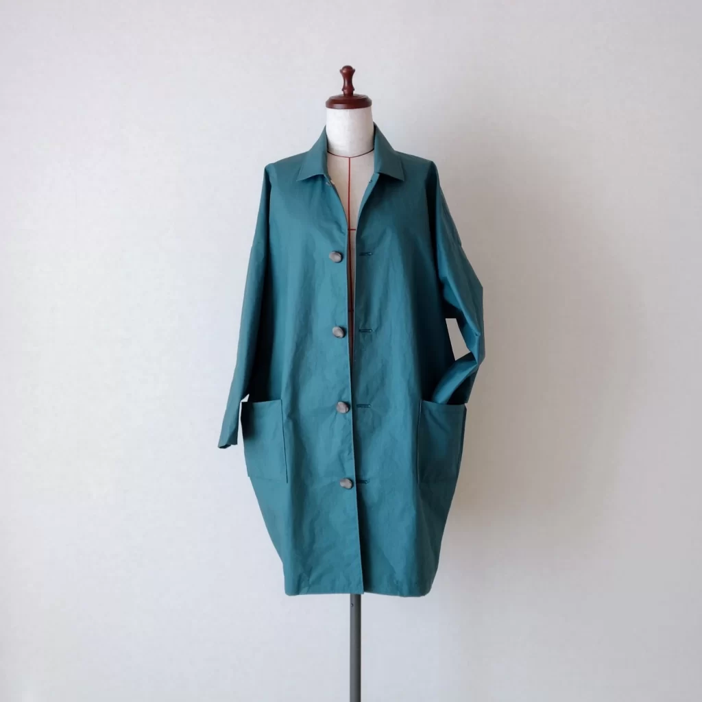 ステンカラーコート、ボタン付けて完成しました。ボタンって高いですね。5個の合計が、本体の生地代とほぼ同じです!