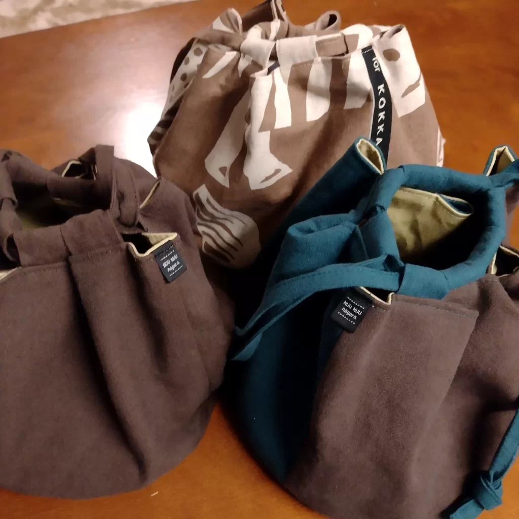 底が広めなので大きく見えるけれど、そこまで高さがないので紐を絞ると思ったよりコンパクトにまとまります。