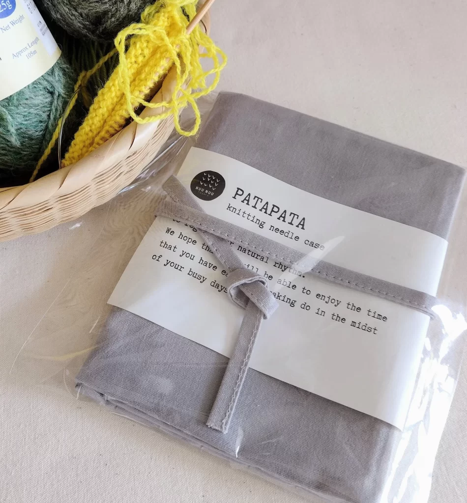 NUU NUU nagaraの編み針ケースには、ちょっとした英文の帯をつけています。