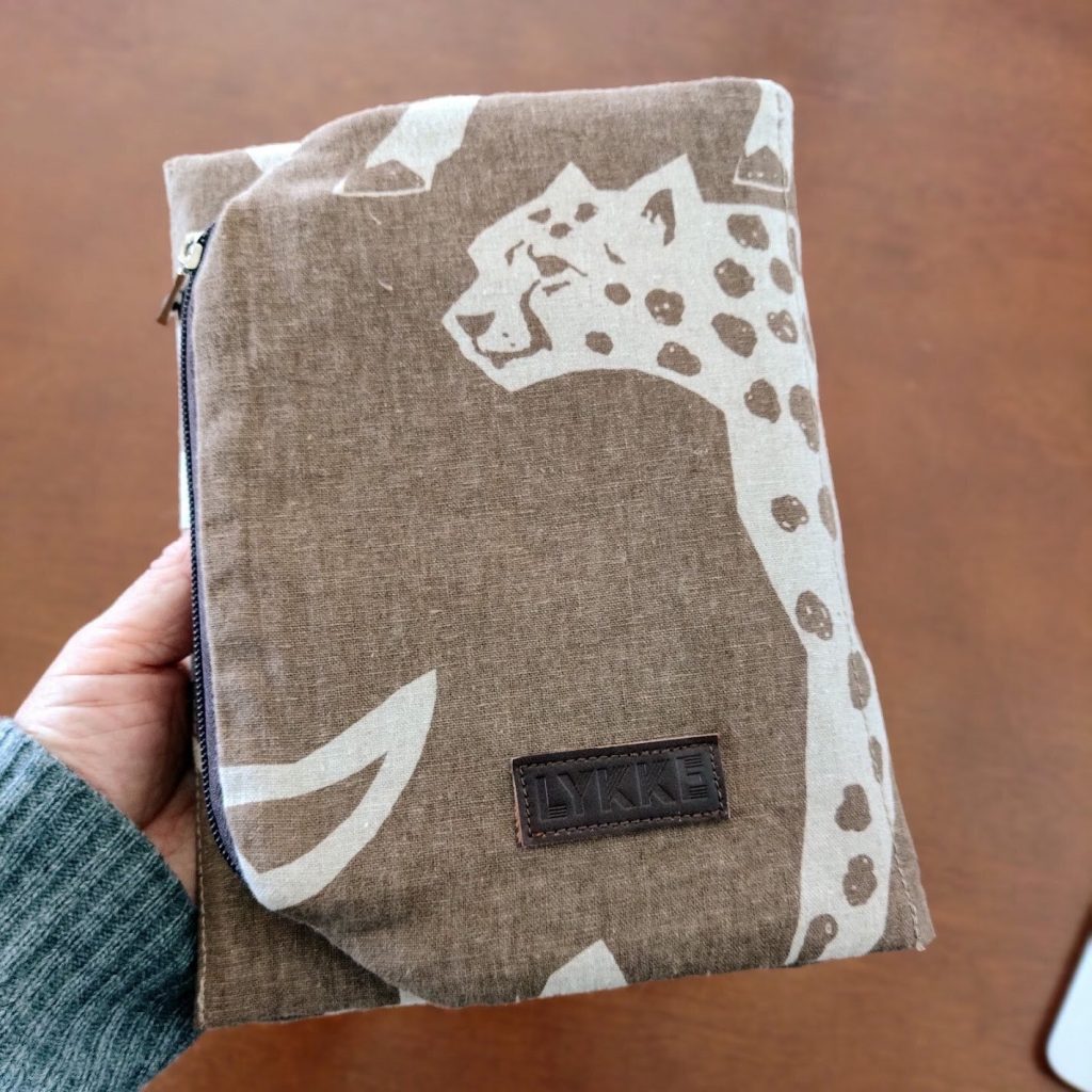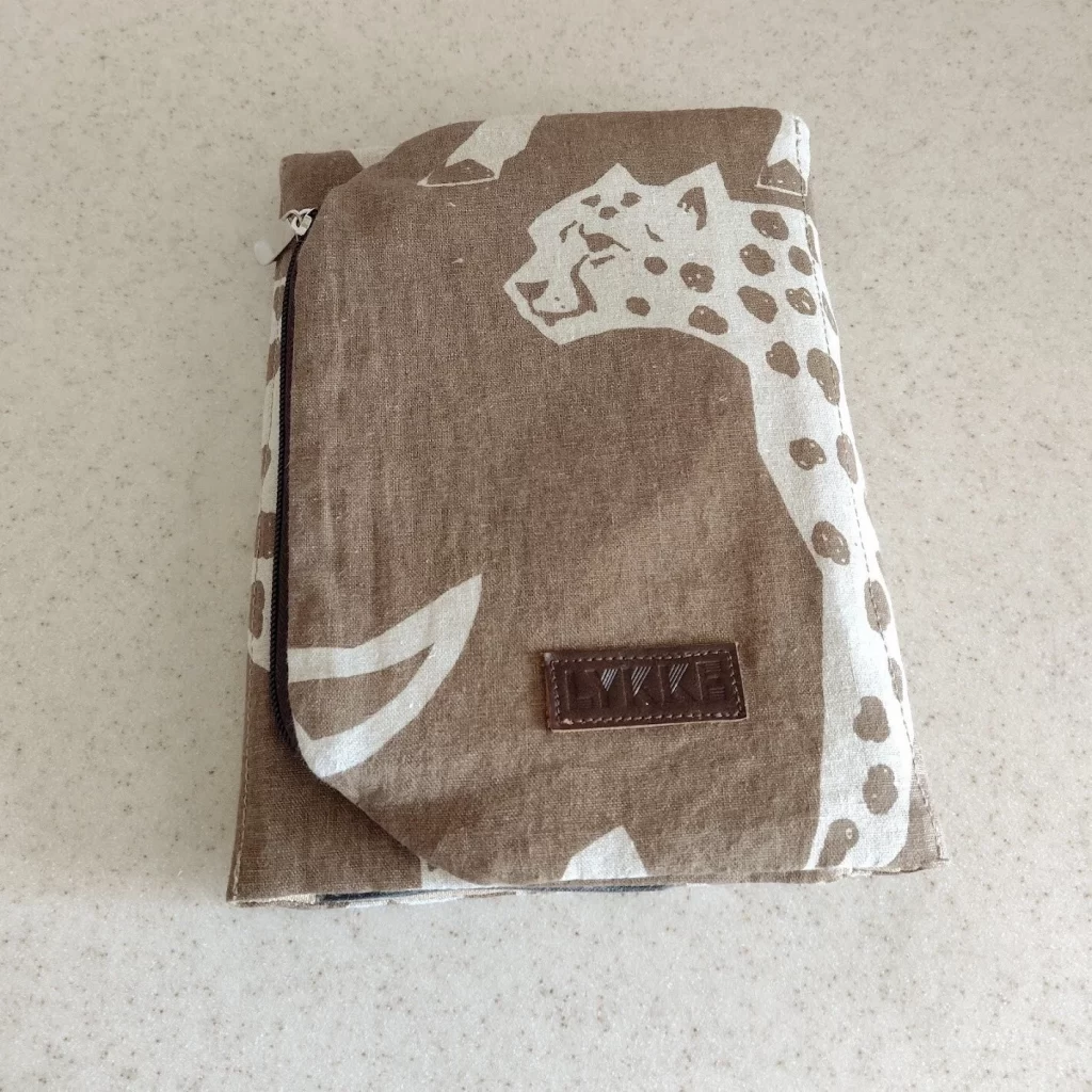 じゃーん。チーターの顔が表紙。LYKKEの革タグもつけました。
