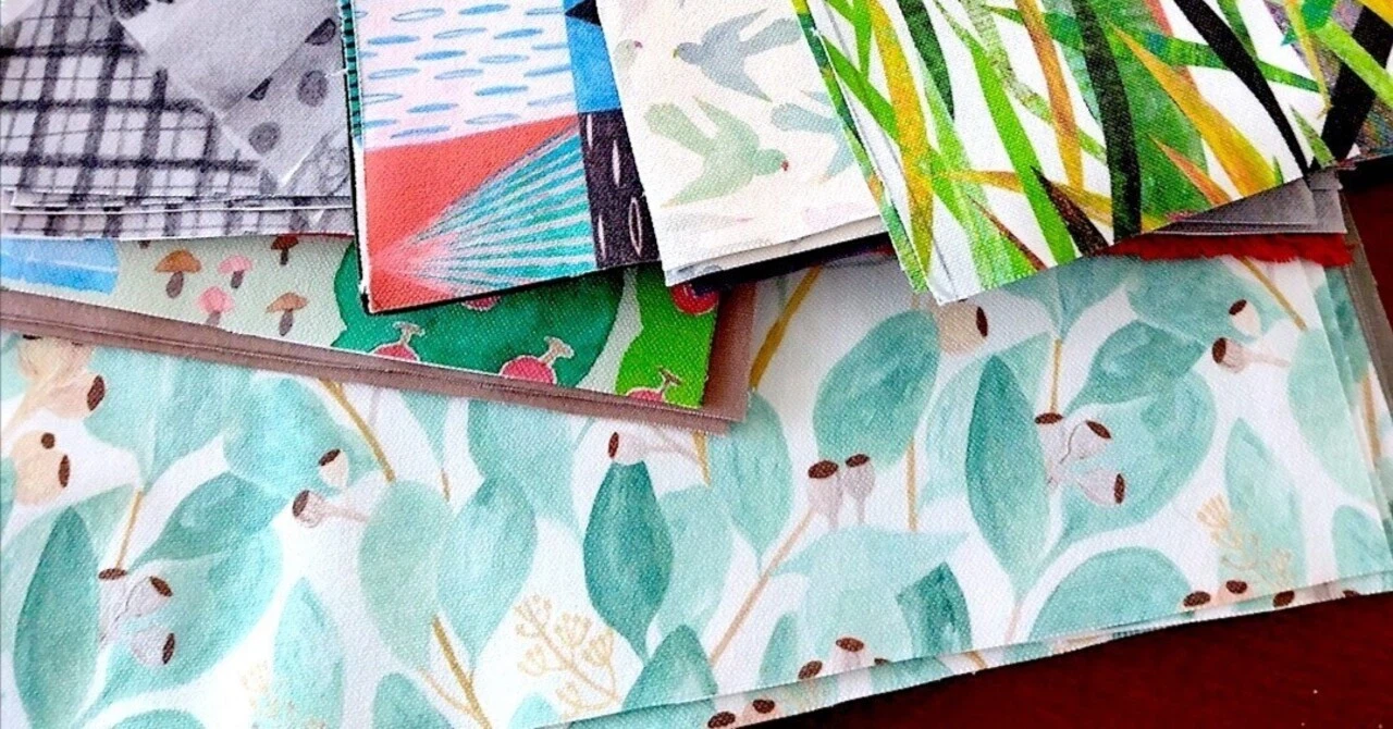 布絵の具を使ってスタンプ遊びをしてみました。ゴムマットの切れ端で押した模様が織物のようになってびっくり。自然乾燥後の風合いも楽しみです。手間はかかるけれど、楽しいひとときになりました。