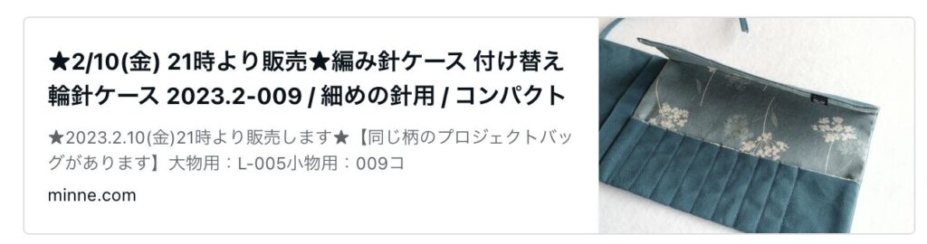 2月1日から、編み針ケース「PATAPATA」の新作を、月曜から金曜まで毎日ひとつずつ紹介して、金曜日の21時に5点まとめて販売開始するというスタイルをお試し中です。