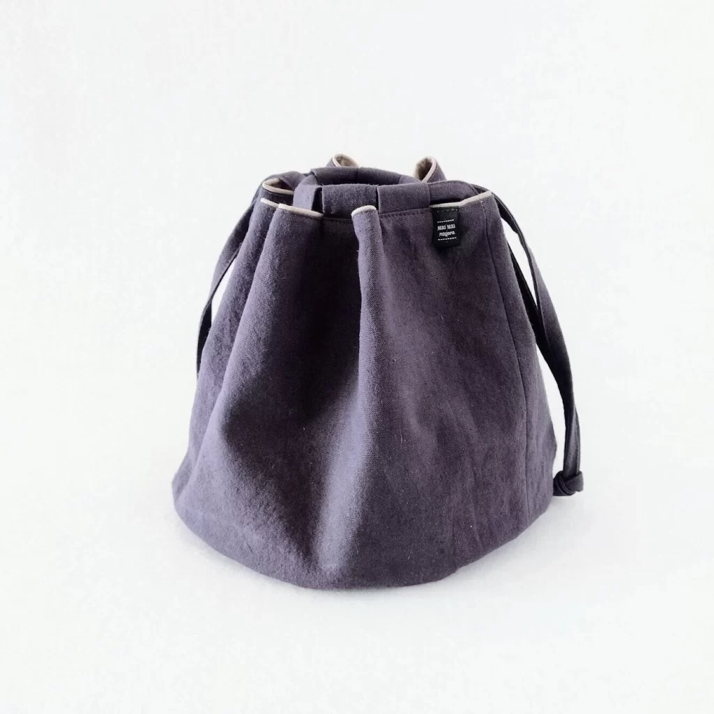 くすみカラーの無地プロジェクトバッグ。会社員時代の昼休みを思い出しながら作った、静かな相棒のようなバッグです。