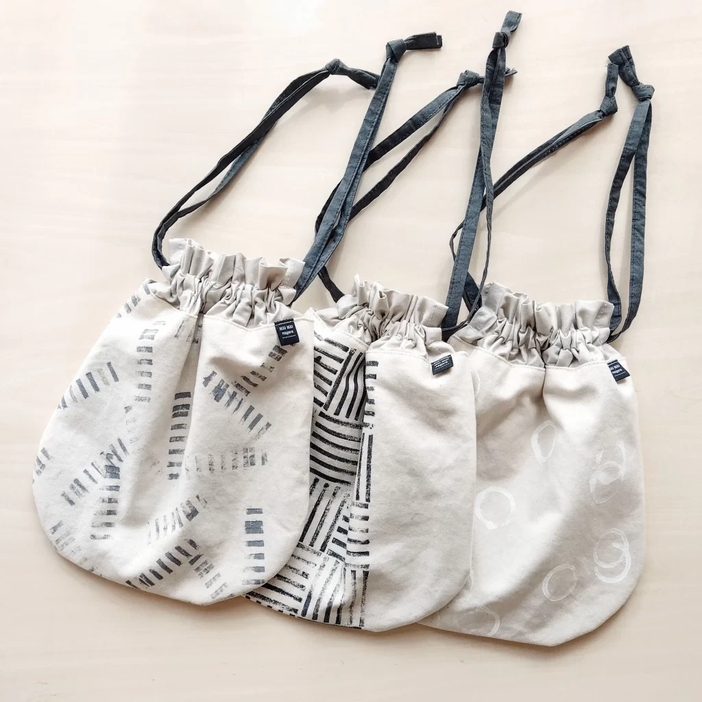 お財布&スマホサイズの、コロンとした可愛い巾着袋。