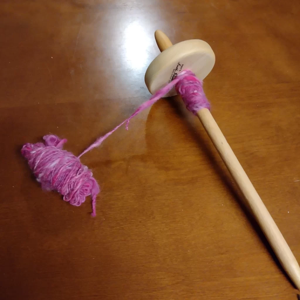 嬉しさのあまり、写真も撮らずにスピンドルを手に羊毛に向かいました。