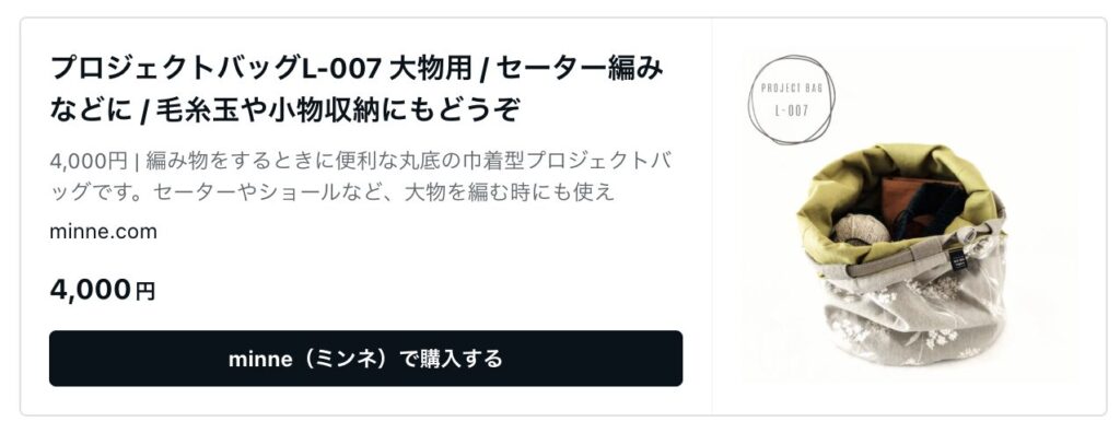そして今日、minneにて新しい大物用プロジェクトバッグを更新しました。